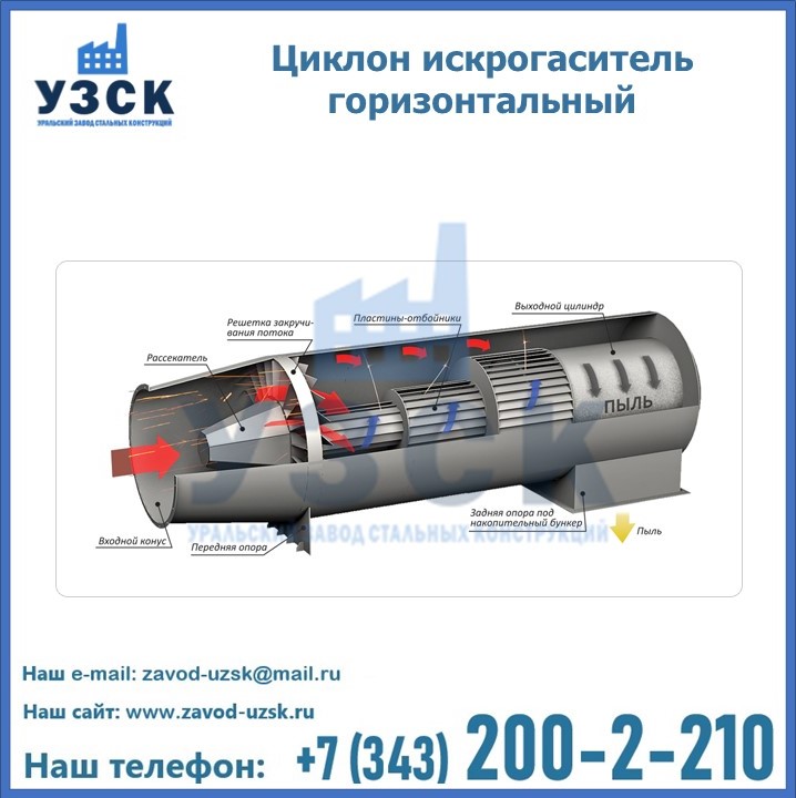 Горизонтальные циклоны-искрогасители ЦГ поставляются в Новокуйбышевске в сборке или же транспортными единицами для последующей сборки, если предназначены для работы с большими объемами.