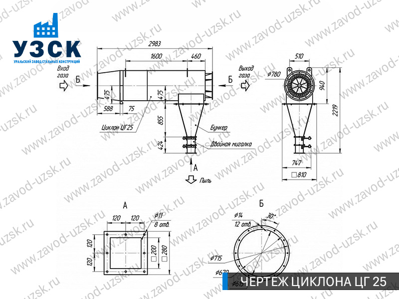 Монтаж циклона-искрогасителя ЦГ должен осуществляться непосредственно к горизонтальному вентиляционному каналу на входе в систему фильтрации и аспирации. Заказать изготовление по индивидуальному техзаданию или купить готовый циклон-искрогаситель ЦГ на заводе УЗСК в Новокуйбышевске можно, оставив заявку прямо на сайте или позвонив по указанному телефону, уточнив все детали касательно продажи оборудования.