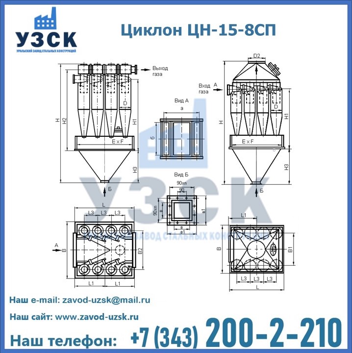 Завод «УЗСК» в Новокуйбышевске предлагает большой выбор циклонов ЦН-15-500×8СП и прочих устройств, полностью укомплектованных и готовых к эксплуатации. Мы гарантируем соответствие оборудования всем требованиям ГОСТ и ТУ, износостойкость и высокую производительность предлагаемого оборудования. Уральский Завод Стальных Конструкций изготавливает и продает надежное, эффективное и производительное оборудование, имеющее длительную гарантию и большой эксплуатационный ресурс. Если требуется изготовить циклон нестандартных размеров, то такой вариант выполнения заказа тоже предусмотрен, так как предприятие имеет собственные производственные площади и надежных поставщиков. На все поставляемое или производимое оборудование имеются чертежи и прочая техническая документация. Заказать и купить циклоны или прочее оборудование высокого качества и по доступной цене можно через наш сайт или по указанному в разделе