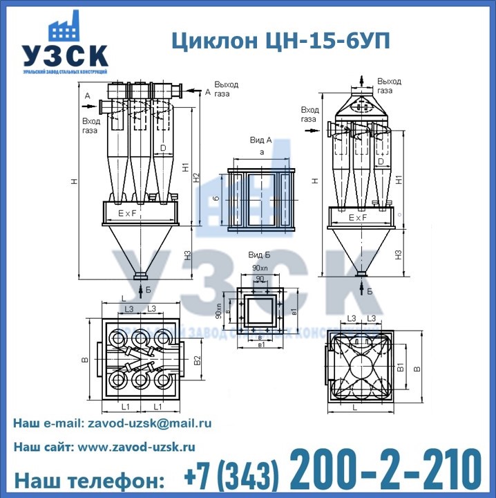 Завод «УЗСК» в Новокуйбышевске предлагает большой выбор циклонов ЦН-15-900×6УП и прочих устройств, полностью укомплектованных и готовых к эксплуатации. Мы гарантируем соответствие оборудования всем требованиям ГОСТ и ТУ, износостойкость и высокую производительность предлагаемого оборудования. Уральский Завод Стальных Конструкций изготавливает и продает надежное, эффективное и производительное оборудование, имеющее длительную гарантию и большой эксплуатационный ресурс. Если требуется изготовить циклон нестандартных размеров, то такой вариант выполнения заказа тоже предусмотрен, так как предприятие имеет собственные производственные площади и надежных поставщиков. На все поставляемое или производимое оборудование имеются чертежи и прочая техническая документация. Заказать и купить циклоны или прочее оборудование высокого качества и по доступной цене можно через наш сайт или по указанному в разделе «Контакты» телефону.