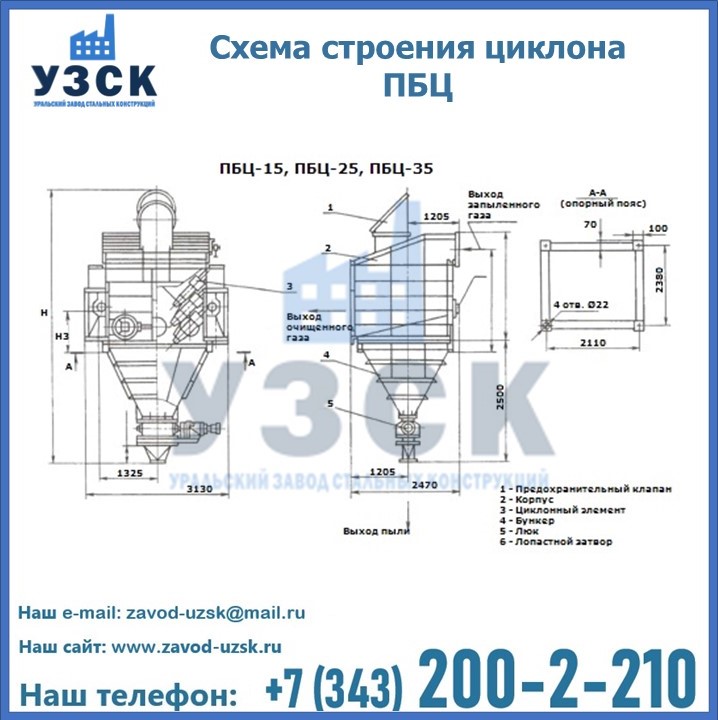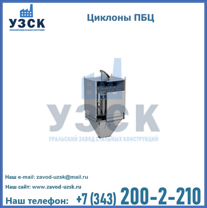 Завод «УЗСК» в Новокуйбышевске предлагает приобрести циклоны ПБЦ и прочие устройства, полностью укомплектованные и готовые к эксплуатации. Мы гарантируем соответствие оборудования всем требованиям ГОСТ и ТУ, износостойкость и высокую производительность предлагаемого оборудования. Уральский Завод Стальных Конструкций изготавливает и продает надежное, эффективное и производительное оборудование, имеющее длительную гарантию и большой эксплуатационный ресурс. Если требуется изготовить циклон нестандартных размеров, то такой вариант выполнения заказа тоже предусмотрен, так как предприятие имеет собственные производственные площади и надежных поставщиков. На все поставляемое или производимое оборудование имеются чертежи и прочая техническая документация. Заказать и купить циклоны или прочее оборудование высокого качества и по доступной цене можно через наш сайт или по указанному в разделе «Контакты» телефону.