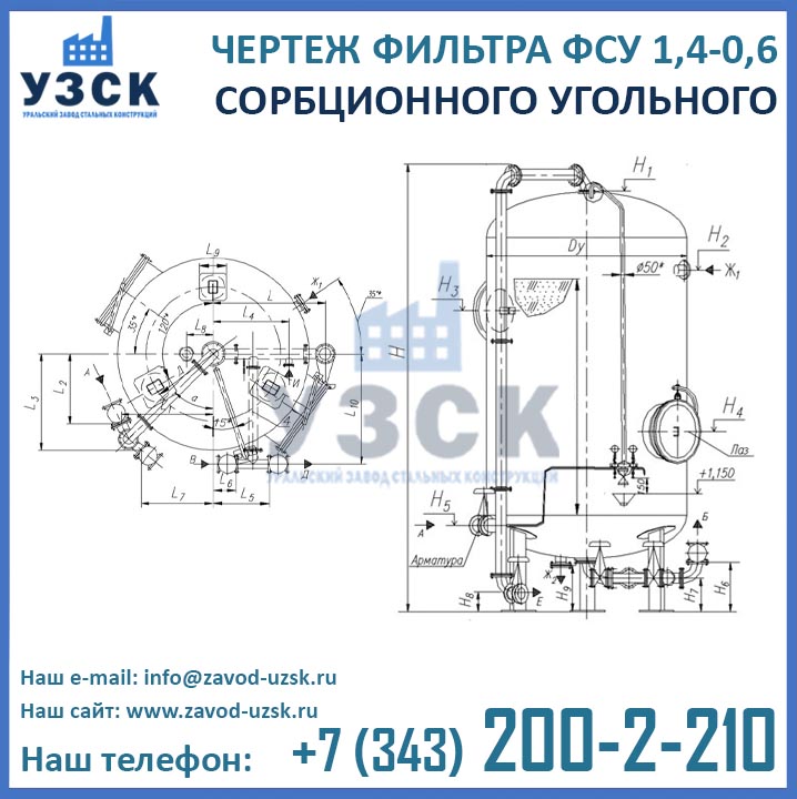 Если вы ищете фильтры ФСУ-1,4-0,6 в Новокуйбышевске от изготовителя, то Вы на правильном пути! Уральский завод стальных конструкций – непосредственный производитель сорбционных фильтров ФСУ, предлагающий самые выгодные цены на ФСУ-1.4-0.6 в Новокуйбышевске. По окончании процесса производства угольные фильтры проходят гидравлические испытания пробным давлением 0,9 МПа на аттестованном гидростенде, находящимся в собственности завода УЗСК. Мы гарантируем высокое качество выпускаемой продукции, и в этом уже убедились ведущие предприятия промышленного сектора России и стран ЕАЭС (см. раздел «Наши клиенты»).
