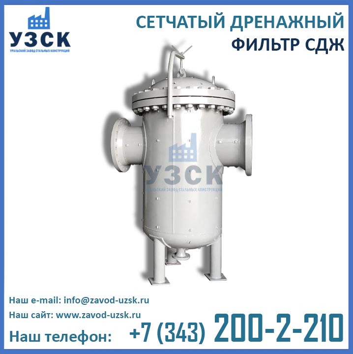 Сетчатые дренажные жидкостные фильтры СДЖ-400 предназначены для фильтрации жидких сред, в том числе нефтепродуктов, от посторонних предметов, примесей, окалины, механических частиц и прочих загрязнений. Дренажный фильтр СДЖ Ду 400 мм в Новокуйбышевске высоко востребован в газовой, нефтяной, химической, нефтеперерабатывающей, и других сферах промышленности. В зависимости от модели, фильтр СДЖ Ду400 эксплуатируется в трубопроводных системах с максимальным давлением Ру 1,6 / 2,5 / 4,0 / 6,3 МПа (16 / 25 / 40 / 63 кгс/см2) и обозначается СДЖ-400-1,6 / СДЖ-400-2,5 / СДЖ-400-4,0 / СДЖ-400-6,3.