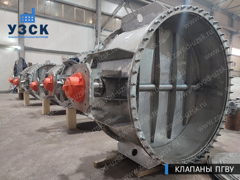 Круглый клапан ПГВУ представляет собой участок трубы, оборудованный изнутри створками. Шибер ПГВУ повторяет геометрию прохода. Для изготовления круглых газоплотных клапанов используются устойчивые к коррозиям и температурным воздействиям материалы (нержавеющая сталь, низколегированная сталь с АКП).